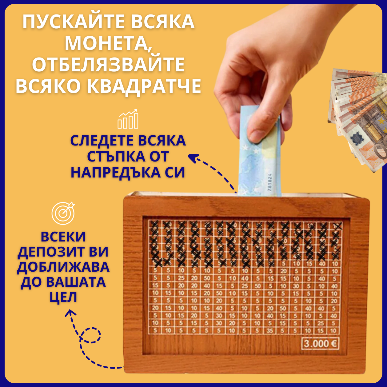 Спестяването никога не е било толкова удовлетворяващо. С всяко отбелязано квадратче върху вашата касичка виждате напредъка си и всеки ден се чувствате по-близо до своите мечти.